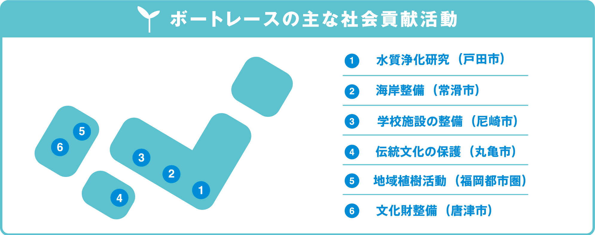 わたしたちは、ボートレース場を「地域に開かれた場所」とするべく、近年さまざまな活動を活性化させています。ボートレース事業は自治体が主催しており、その収益は街の様々なコトやモノに還元されています。しかし、ボートレース場が地域の皆様にとって「身近な場所」になれているかといえば、まだ十分ではありません。