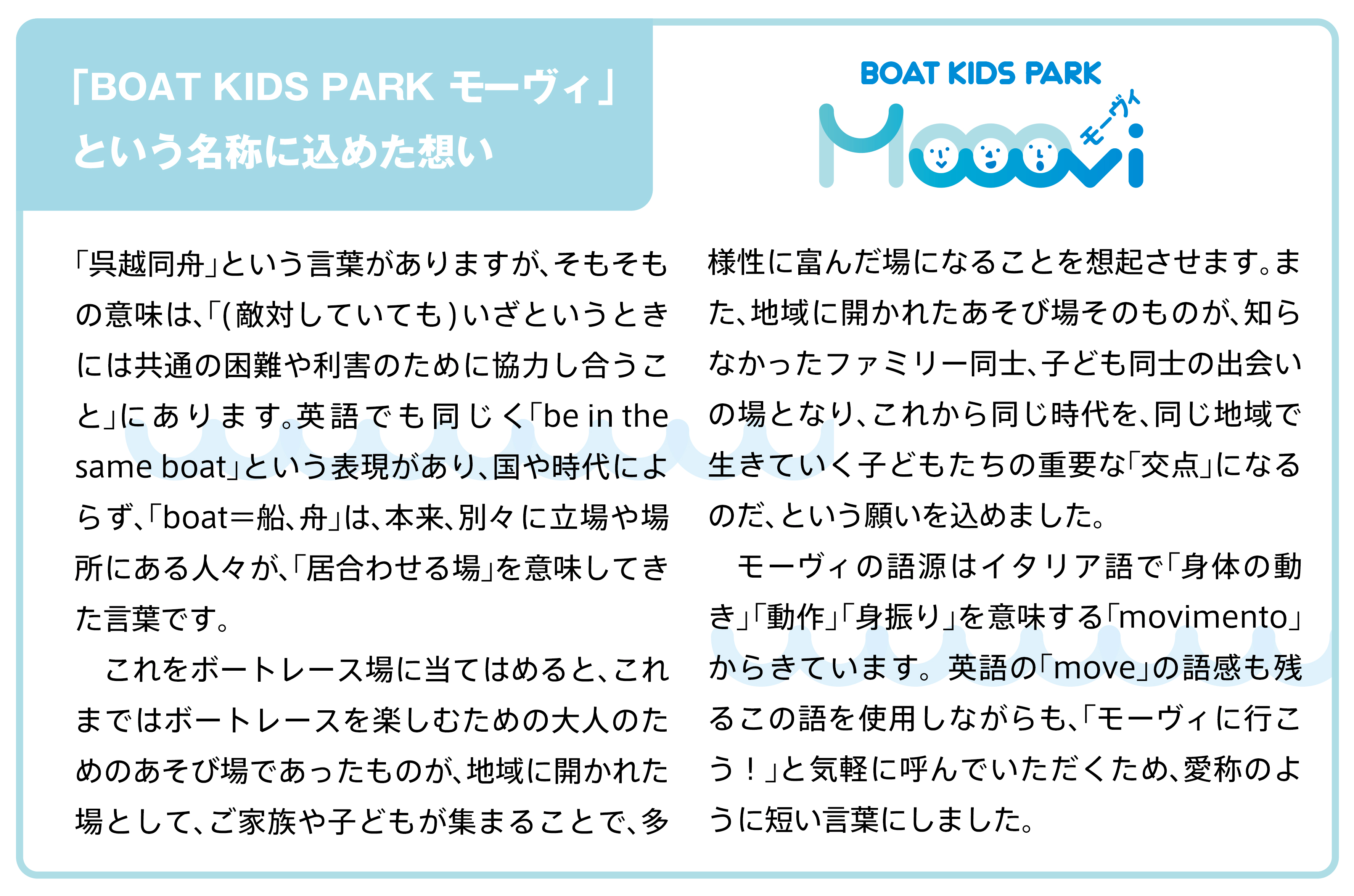 ボートレースは、娯楽であると同時にスポーツでもあります。わたしたちは「運動」という言葉がもつ本来の意味に立ち返り、ボーネルンドの考えに大きく共感しました。
